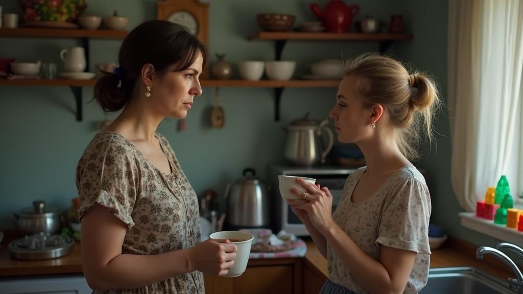 Свекровь, Надя, наклонилась над столом и тщательно расправила клеёнку на уголке — будто боялась, что разговор пойдёт наперекосяк вместе с ней.