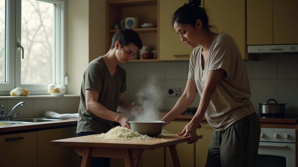 Она села напротив него и начала машинально раскладывать плов по тарелкам. На кухне витал аромат специй, но вместо уюта он только усиливал тревожность момента.