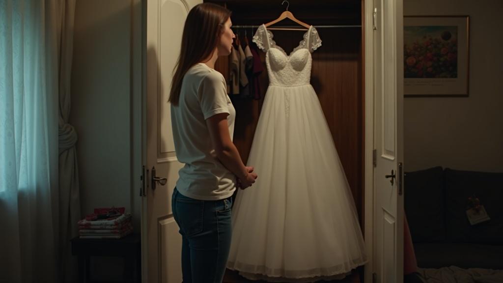 Она кинулась к шкафу и резко распахнула дверцы — петли жалобно заскрипели в ответ. Пусто. Там, где ещё вчера висело её свадебное платье — белое, расшитое вручную мелкими жемчужинами, — теперь одиноко покачивалась пустая вешалка.