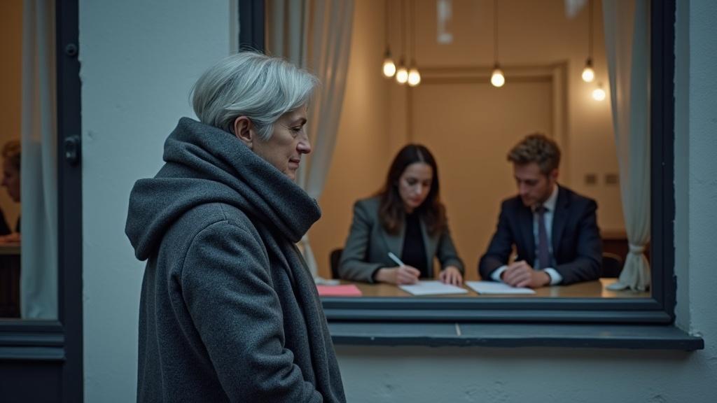 Леся застыла у входа в нотариальную контору, когда в окне заметила знакомую фигуру — Лариса сидела за столом напротив мужчины в деловом костюме и с довольной улыбкой ставила подпись под каким-то документом.