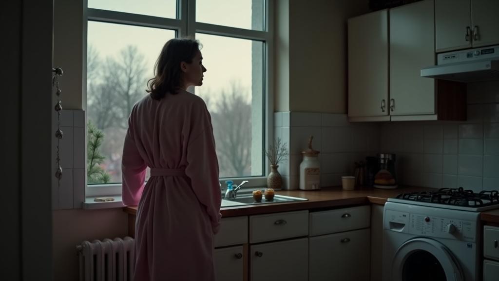 На кухне царила тишина, лишь монотонный шум стиральной машины доносился из ванной — будто она старательно пыталась стереть остатки недавнего веселья.
