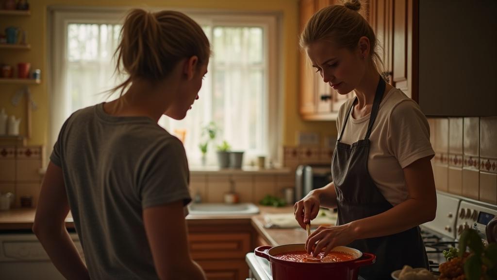 Голос Марты прозвучал в тишине кухни слишком ровно, как будто она интересовалась временем. Свекровь, стоявшая у плиты, даже не обернулась. Она медленно и сосредоточенно мешала в кастрюле густую бордовую массу, наполнявшую квартиру насыщенным ароматом борща. Её движения были неспешными и уверенными, словно она не просто варила суп, а совершала важный обряд, который нельзя прерывать по пустякам.