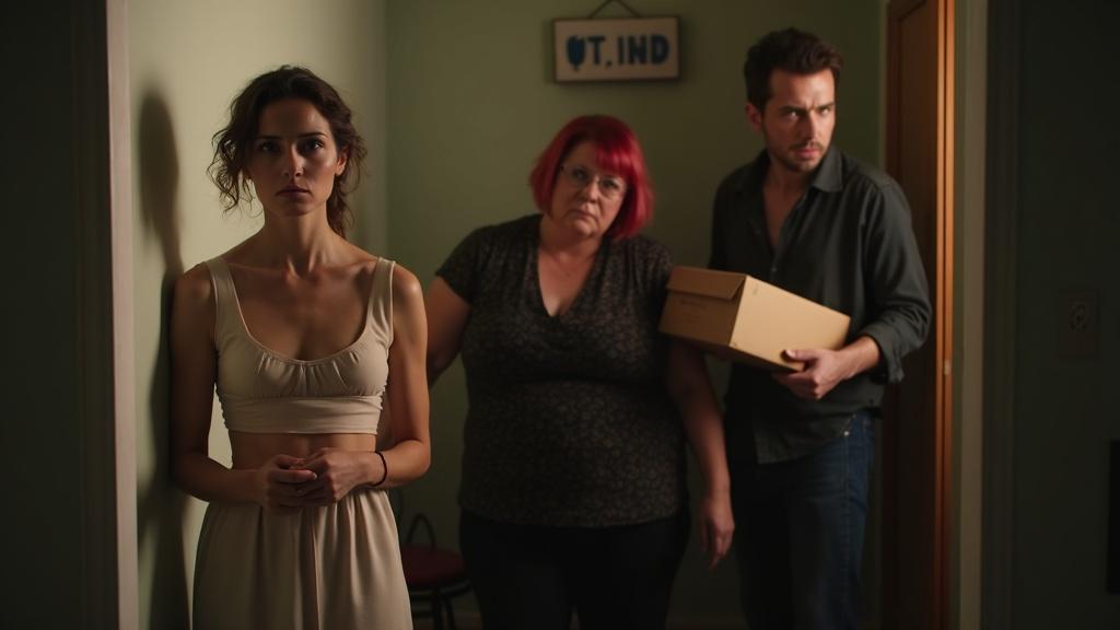Наталья, дородная женщина с химической завивкой цвета перезрелого баклажана, застыла с картонной коробкой в руках. Щёки её покрылись пятнами гнева, но взгляд оставался холодным и высокомерным. За её спиной переминался с ноги на ногу Иван — муж, с которым Ирина прожила пять лет. Чуть поодаль, жуя жвачку и разглядывая обои с видом хозяйки положения, к стене прислонилась София — сестра Ивана.