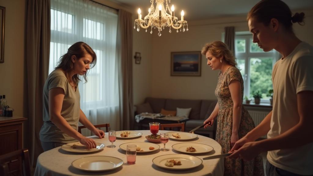 Богдан молча занял место напротив сестры. Мария устроилась между мужем и свекровью, мысленно готовясь сглаживать острые углы за столом.