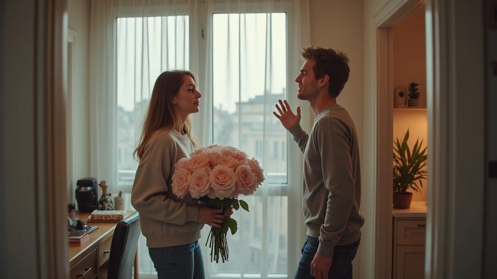 — Маричка, глянь, что я тебе привёз! — Олег влетел в квартиру с пышным букетом пионов и утончённой вазой.