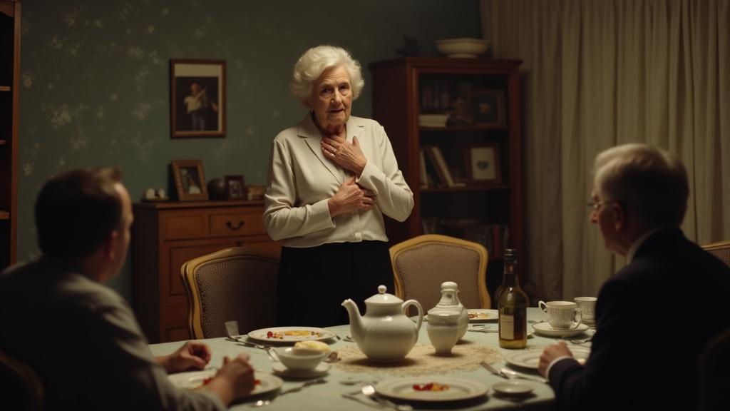 Звук разбившегося фарфора прозвучал, словно выстрел. Весь зал мгновенно замер. А Надя стояла и смотрела, как вся её жизнь — почти пять десятков лет забот и воспоминаний — рушится и исчезает в мусорном пакете.