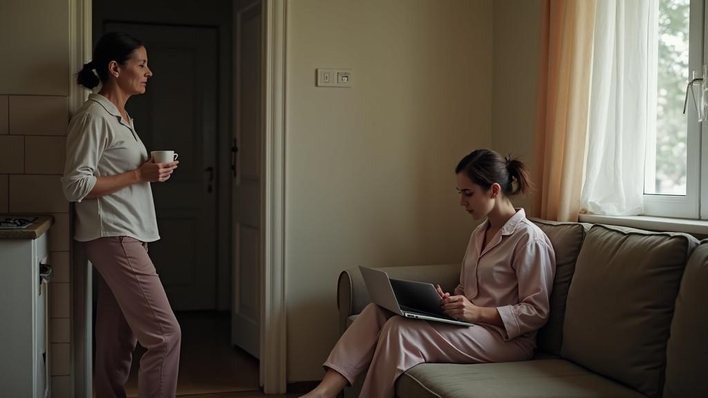 Людмила стояла в проёме кухни, опершись плечом о дверной косяк. В одной руке у неё была чашка чая, а в голосе звучала смесь безразличия с лёгкой ноткой пренебрежения.