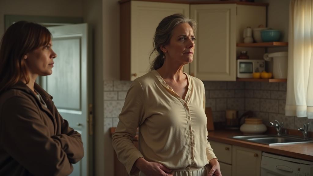 Пока мама направилась обратно на кухню, Оксана сняла пальто, вымыла руки и переоделась в уютную домашнюю одежду. Затем присоединилась к матери на кухне.
