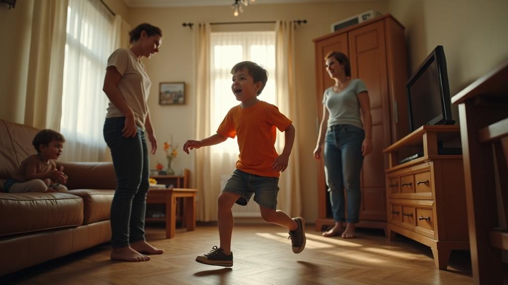 Пока взрослые беседовали за чаем на кухне, Марко окончательно вошел в раж. Из гостиной донеслись визг и грохот.