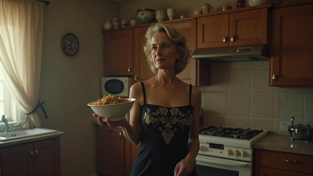 Я молча поставила салатницу на край стола и направилась на кухню за новой вилкой. Туфли, купленные специально к этому вечеру, начали натирать ноги, но я держалась прямо — осанка была единственным оружием при мне.