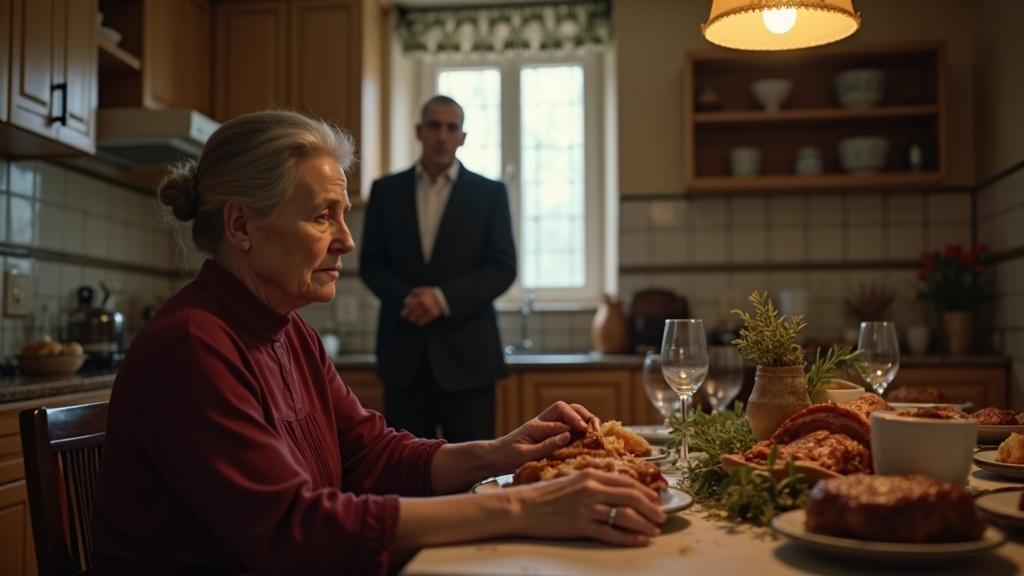 Кухня была наполнена таким насыщенным ароматом, что любой прохожий, случайно вдохнув его через приоткрытое окно, наверняка позавидовал бы до спазма в животе. Теплый запах запеченного мяса переплетался с нотами розмарина, чеснока и едва уловимой сладостью ванили. Мария устало присела на табурет, провела тыльной стороной ладони по влажному лбу. В пояснице тянуло — два последних дня она почти не отходила от плиты, готовясь к самому важному вечеру в году.