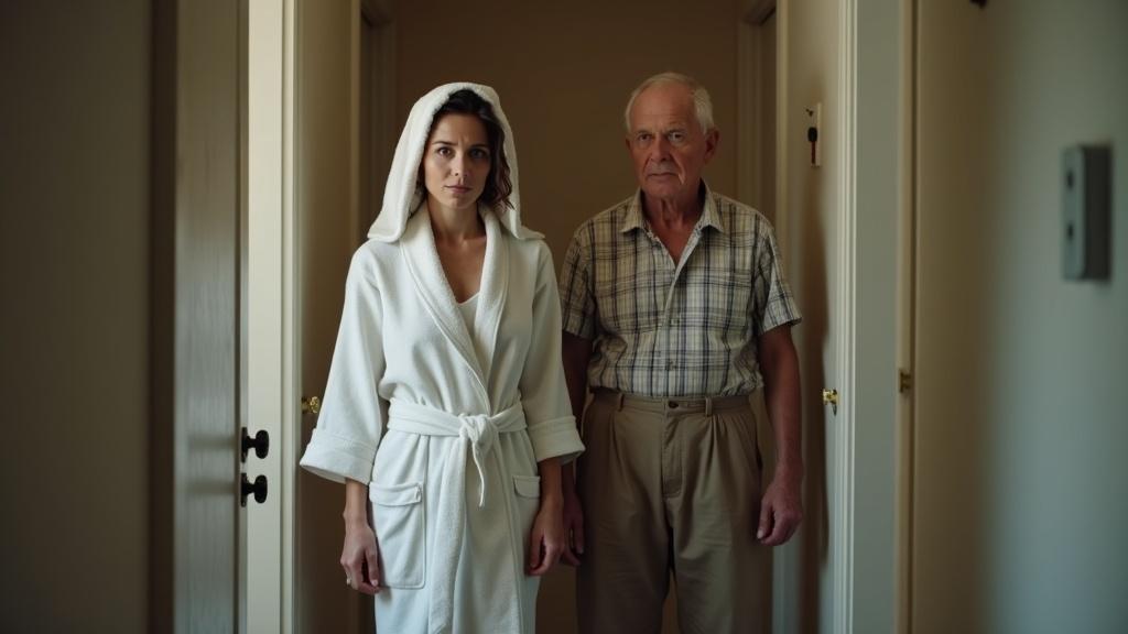 Виталий произнёс это так, будто я случайно заглянула в чужую квартиру. Хотя я всего лишь вышла из своей ванной — в собственном халате, с полотенцем на влажных волосах. Сделала шаг в коридор и остолбенела. Там переминался с ноги на ногу мужчина лет шестидесяти: седоватый, в старых спортивных штанах с вытянутыми коленями и клетчатой рубашке, застёгнутой как попало.