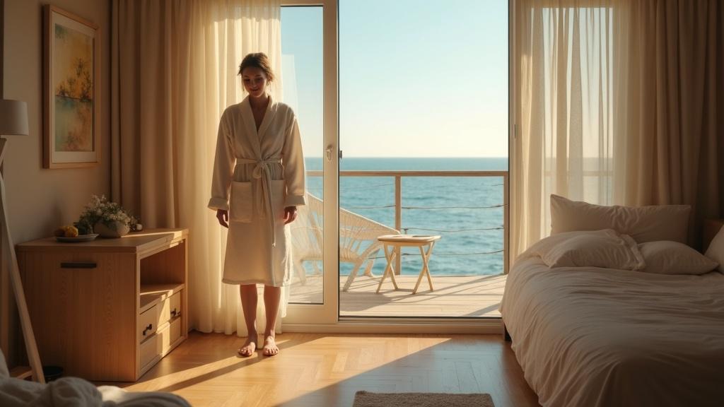Море в то утро было удивительно тихим, когда Мария проснулась от мягкого плеска волн за окном. Солнце уже поднялось и, пробиваясь сквозь полупрозрачные занавески, рассыпало по деревянному полу тёплые золотистые блики. В воздухе стоял запах соли и свежести — и ещё чего-то неуловимого, похожего на ощущение свободы. Она сладко потянулась, улыбнулась и повернулась на бок — рядом крепко спал Иван.