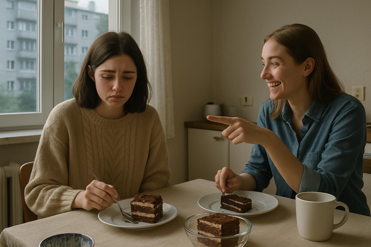 – Леся, я уже объелась, больше не могу. Доешь мой тортик? – с усмешкой произнесла подруга.