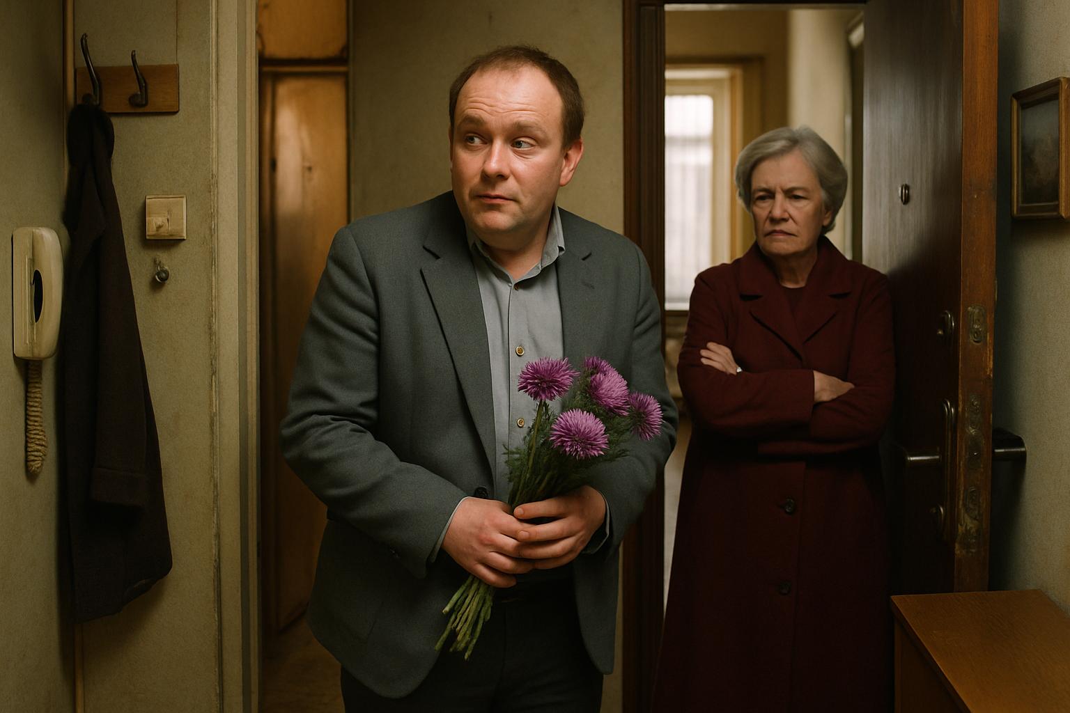 И вот теперь этот охотник за музами переминался на моем коврике с букетом астр в руках.