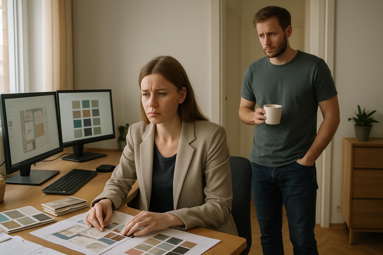 К концу второй недели Оксана проводила онлайн-встречу с новой молодой парой, планировавшей ремонт в загородном доме. Она устроилась за кухонным столом с ноутбуком — в кабинете теперь жила свекровь, а замка на двери не было. В середине обсуждения из комнаты раздался звук сериала: Людмила смотрела его на планшете, оставив дверь открытой. Клиент деликатно уточнил: «У вас что-то фоном звучит?» Оксана извинилась, встала, прикрыла дверь снаружи и вернулась к разговору. Через пять минут дверь снова распахнулась — «душно».